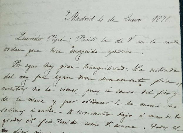 Carta 6 – Nieva en Madrid – Entra el nuevo rey de EspañaHoy he trabajado en la Carta 06, escrita por Rafael desde Madrid, el 4 de enero de 1871, dirigida a su padre. Es una de esas cartas que, sin decir mucho, dice bastante. Habla del frío, de la nieve, del dinero que le queda, y de la rutina que llevan él y Pepe mientras la……